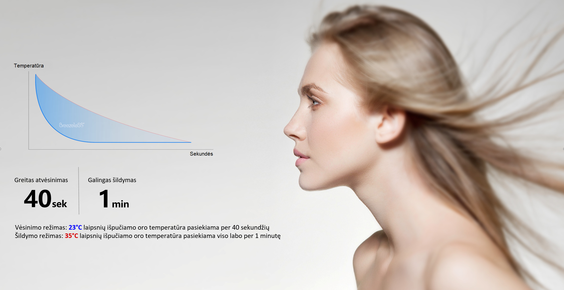 Vidiniai BreezeleSS+ blokai turi dvigubas menteles TwinFlap su 7928 mini skylutėmis, kurios užtikrina tolygią atvėsinto oro sklaidą. BreezeleSS+ yra pirmasis ir kol kas vienintelis modelis rinkoje, turintis šonines oro išpūtimo angas. Šios S formos angos veikia išvien su priekinėmis mentelėmis ir užtikrina optimalų oro srautą per šilumokaitį bei tolygų oro paskirstymą patalpoje.